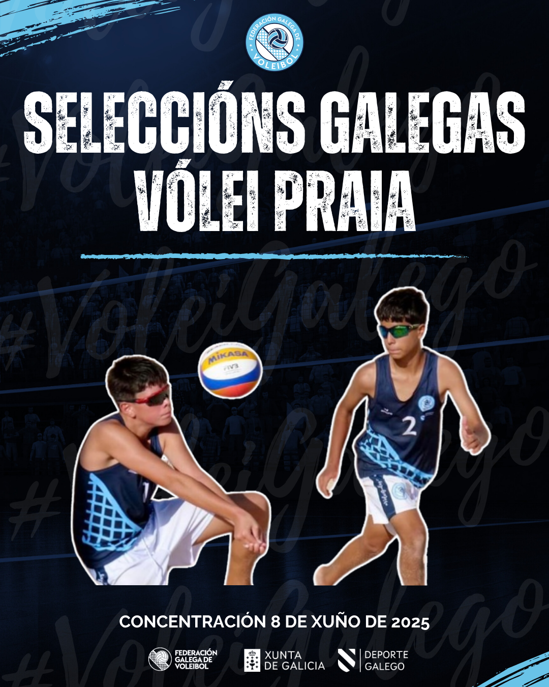 A Federación Galega de Voleibol fai oficial a segunda convocatoria das Seleccións Galegas Vólei Praia, relacionada cas categorías infantil e cadete e que terá lugar o vindeiro día 8 deste mes no recinto deportivo de Oira (Ourense).