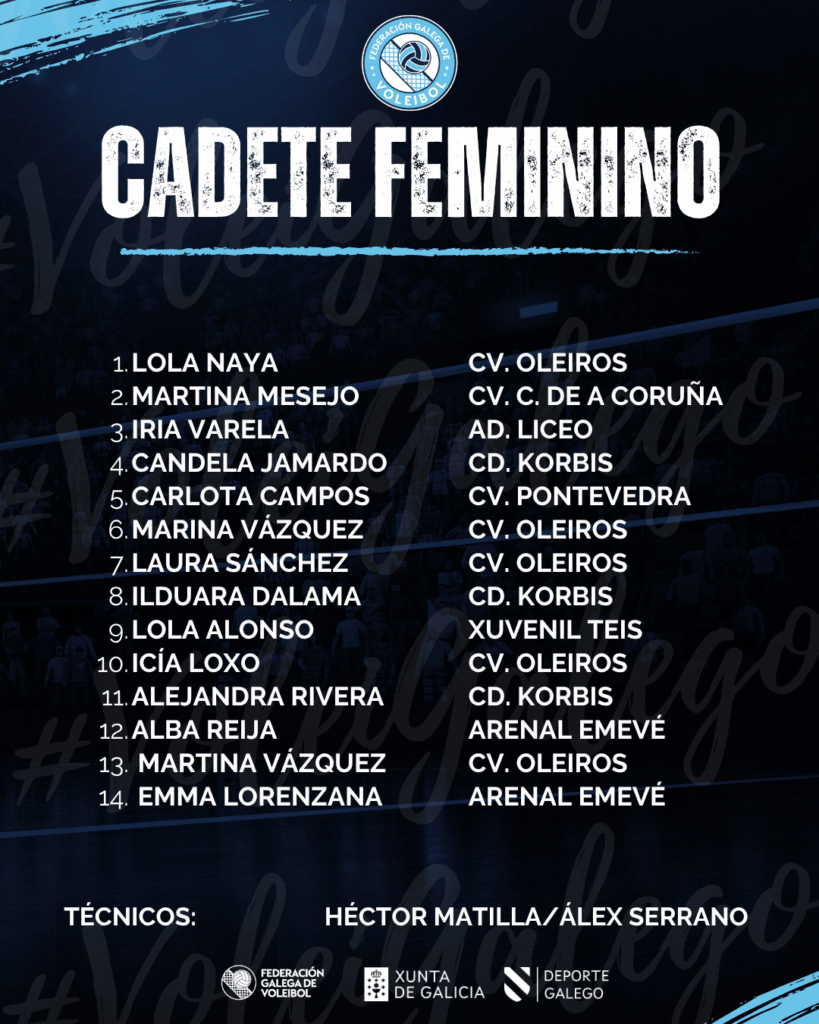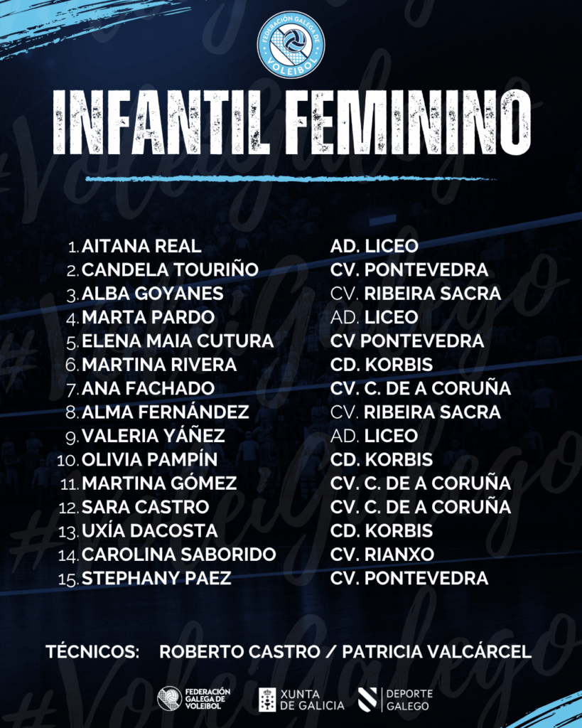 Lista de xogadores/as convocados/as para a concentración das Seleccións Galegas en Quiroga do 15 de xuño.