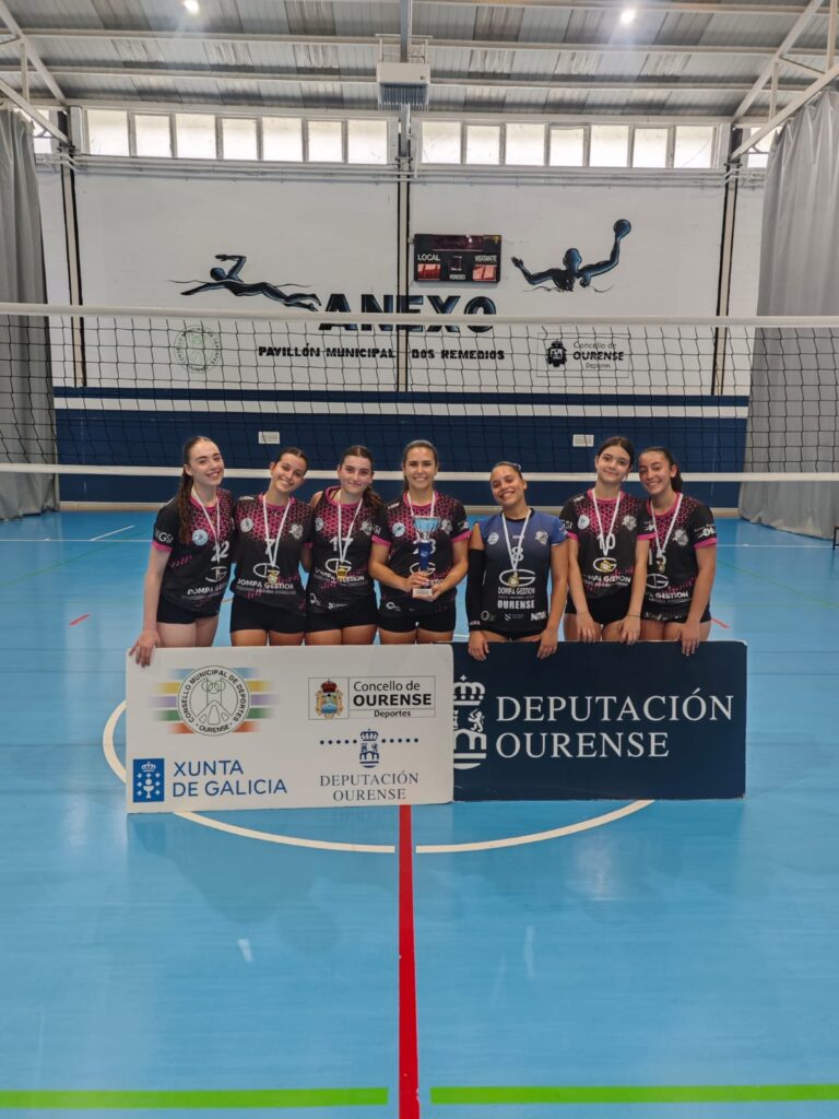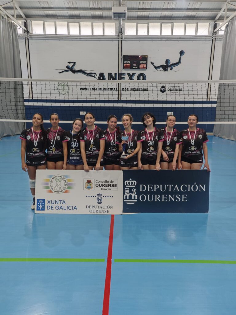 Na categoría xuvenil feminina, o Voleyourense Morado alzouse co título tras remontar un primeiro set adverso ante o DompaVolei XF2. Pola súa banda, na sénior feminina, o conxunto DompaVolei Sénior impúxose ao DompaVolei Xuvenil, nun emocionante duelo xeracional que puxo fin á xornada matinal.