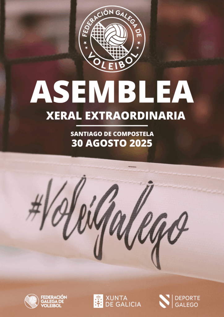 ACTUALIZACIÓN: modifícase a sede na que se celebrará a reunión da Asemblea Xeral Ordinaria da FGVb, deste xeito terá lugar, o próximo 30 de agosto, ás 09:30 horas en primeira convocatoria e as 10:00 horas en segunda convocatoria, na Secretaría Xeral para o Deporte, sita na Rúa Madrid 2-4 (Fontiñas), de Santiago de Compostela..