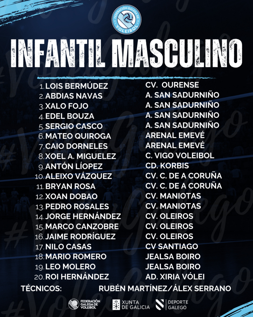 A Federación Galega de Voleibol publica a lista de deportistas convocados e convocadas para participar na primeira concentración das Seleccións Galegas de voleibol da tempada 2025-26, que se celebrará o domingo 14 de decembro, de 16:00 a 19:00 horas, no Pavillón da Xunqueira (Pontevedra).